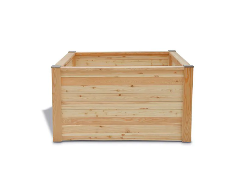 4 x Abschlussbrett Holz 8 x Bodenbrett Holz 24 x Wandbrett Holz 4 x Steher Holz 4 x Handlauf Holz 4 x Steherabdeckung Edelstahl 8 x Schrauben Edelstahl Aufbauanleitung |